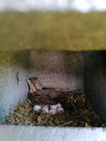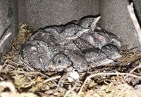 Das Foto zeigt junge Wendehälse im Nistkasten ca. eine Woche nach dem Schlüpfen aus den Eiern. Foto (c) Jonas Nelhiebel, Naturpark Hirschwald