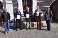 März 2022 | Ein freudiges Ereignis war die Unterzeichnung eines Kooperationsvertrages zur Weiterentwicklung des Marktes Hohenburg als Fledermausgemeinde und Standort für das Naturparkzentrum Naturpark Hirschwald mit dem Schwerpunkt Fledermäuse zwischen dem Markt Hohenburg, dem Naturpark Hirschwald und dem Landesbund für Vogelschutz in Bayern (LBV). 1. Bgm. Florian Junkes, Dr. Norbert Schäffer (Vorsitzender des LBV) und Markus Dollacker (1. Vorsitzender des Naturparks Hirschwald) freuten sich gemeinsam mit Naturpark-Geschäftsführerin Isabel Lautenschlager und Gebietsbetreuer Alexander Gnatz über die schriftliche Besiegelung der bereits bestehenden langjährigen Kooperation.