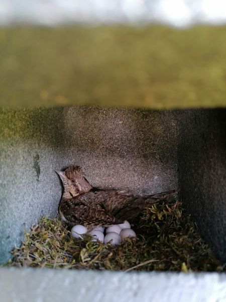 „Bei einem so selten gewordenen Vogel unterstützt man natürlich nebenbei auch noch viele weitere, häufigere Arten“. Jonas Nelhiebel hat auch heuer wieder alle Kästen geöffnet, um den Brutbestand zu kontrollieren. Für das Öffnen ist eine artenschutzrechtliche Ausnahmegenehmigung der Höheren Naturschutzbehörde erforderlich, die der Ranger extra dafür erhalten hat. „Wir wollen die Tiere natürlich nur so wenig wie möglich stören. Ganz vermeiden lässt es sich nicht. Das heißt wir öffnen nur kurz und verschaffen uns ein Bild über den Bestand und zählen die Eier oder die bereits geschlüpften Jungvögel und machen den Kasten sofort wieder zu.“ erklärt der Ranger. „Beim Öffnen der Kästen haben wir auch so manche Überraschung erlebt. Denn neben der Zielart, dem Wendehals, waren auch Siebenschläfer, Fledermäuse, Meisen und Wespen in den Kästen.“