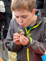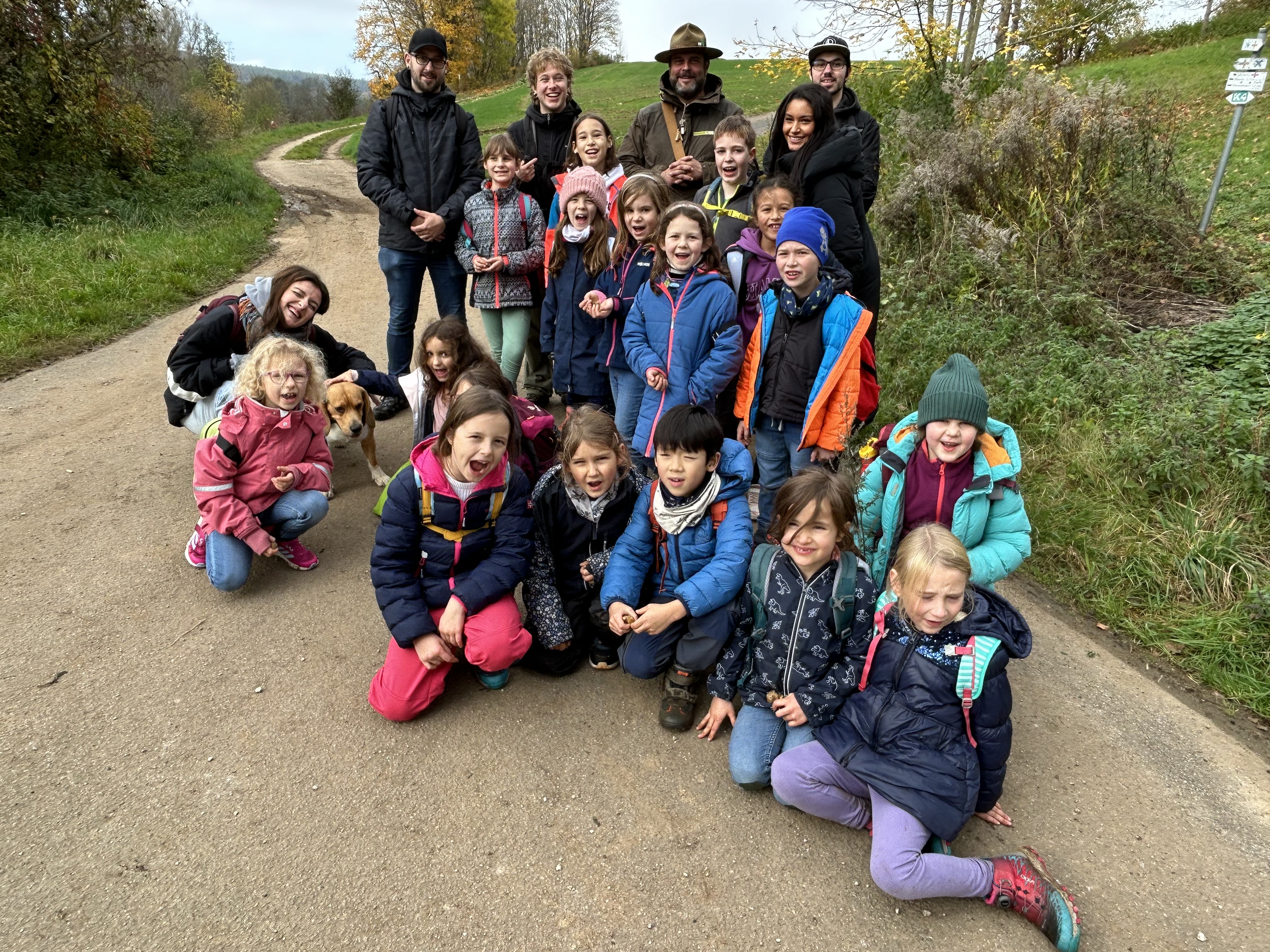 Für Kinder aus einem Nürnberger Hort ging es in den Herbstferien per Bus und Bahn in die Natur. Naturpark-Ranger Christian und sein Hund Ranger begleiteten die Kinder zunächst an die Vils, wo das Staunen groß war, als sie Signalkrebse aus nächster Nähe zu sehen bekamen. Ranger Christian erklärte ihnen, warum diese Art invasiv ist, was das überhaupt heißt und was der Naturpark in seinem Krebsprojekt so alles macht. Dann ging es auf einer Wanderung auf die Höhen über dem Vilstal, wo die Kinder neben der schönen Aussicht und dem Sonnenschein auch viel über die heimische Natur erfuhren. Am Wegesrand gingen sie auf Feuersteinsuche, denn Christian hatte ihnen versprochen, am Endpunkt der Wanderung noch das Feuermachen mit Naturmaterialien zu zeigen. Wieder im Vilstal angekommen ging es zu einer der Wildkameras des Naturparks, mit der Wildtiermonitoring durchgeführt wird. Gespannt schauten die Kinder die Bilder auf der Kamera durch – und tatsächlich, auch der seltene Fischotter hatte ein schönes Selfie hinterlassen. Am Schluss ging es dann mit Feuerstein, Zunder und Distelsamen ans Feuer machen wie in alten Zeiten.