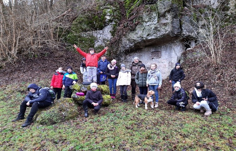 Fährte, Spur oder Geläuf? Tiere hinterlassen Abdrücke – nur welche? Um diesen Spuren auf den Grund zu gehen „spielte“ die 6. Klasse der Naturpark-Schule Mittelschule Ensdorf am 8. Februar Indianer und Detektiv und machte sich mit ihrer Klassenlehrerin Isabella Schrimpf, unserem Ranger Christian Rudolf und seinem Hund „Ranger“ auf den Weg in den Hirschwald, um dort zu erkunden, welche Tiere dort ihre Tritte oder andere Spuren zurückgelassen haben.