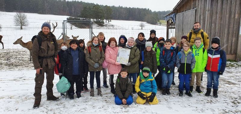Die Naturparkschule Mittelschule Ensdorf besuchte am 07.12.21 mit unserem Ranger Jonas das Hirschgehege der Waldschänke Heinzhof sowie das LBV Fledermaushaus in Hohenburg