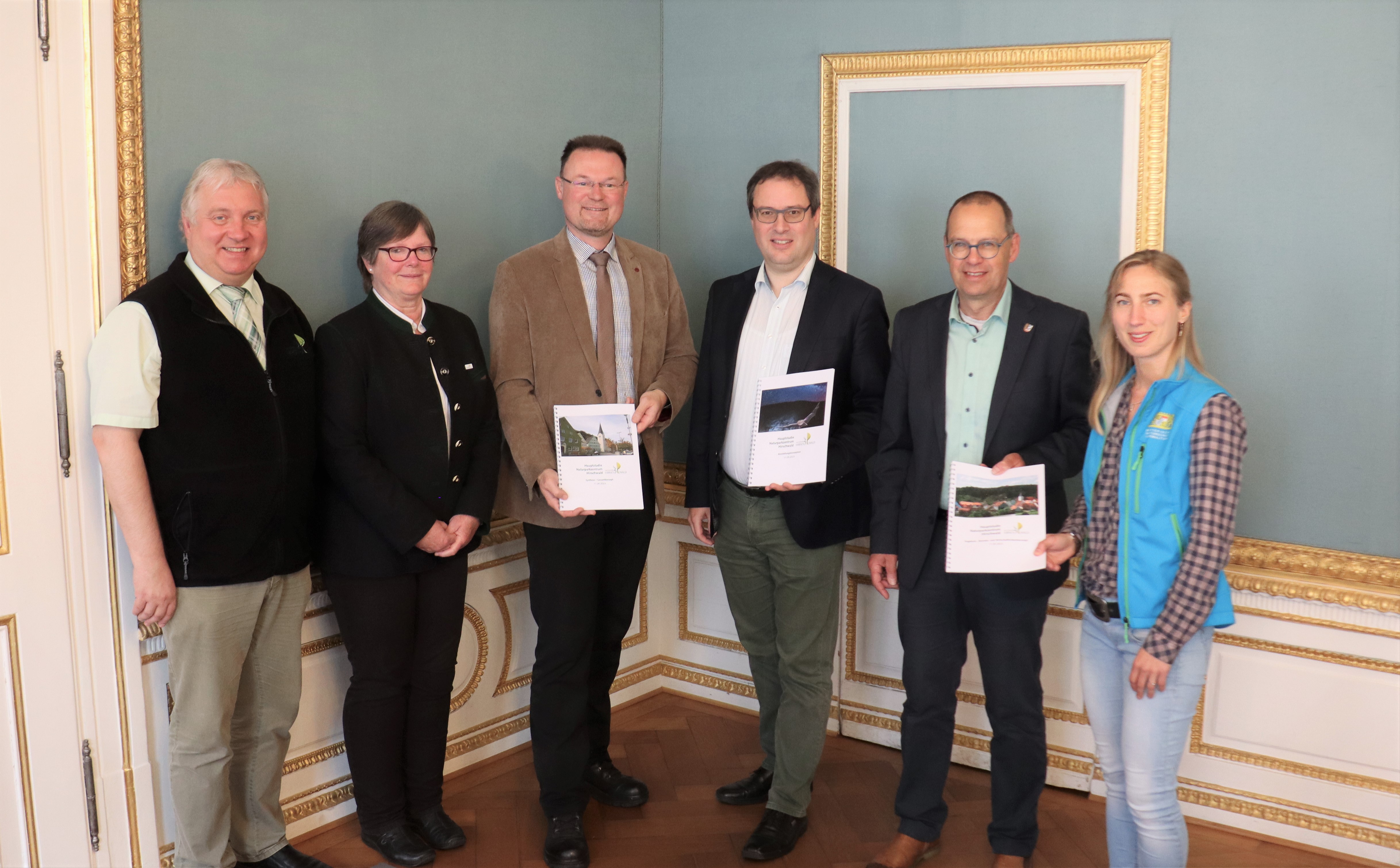 Die Machbarkeitsstudie zum geplanten Naturparkzentrum in Hohenburg wurde an Regierungsvizepräsident Florian Luderschmid, Horst Schmid und Stefanie Graml überreicht