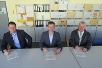 BU: Freuen sich über die Vertragsunterzeichnung (v. li.): Rektor Peter Großmann, Bürgermeister Albert Geitner und Naturpark-Vorsitzender Markus Dollacker.